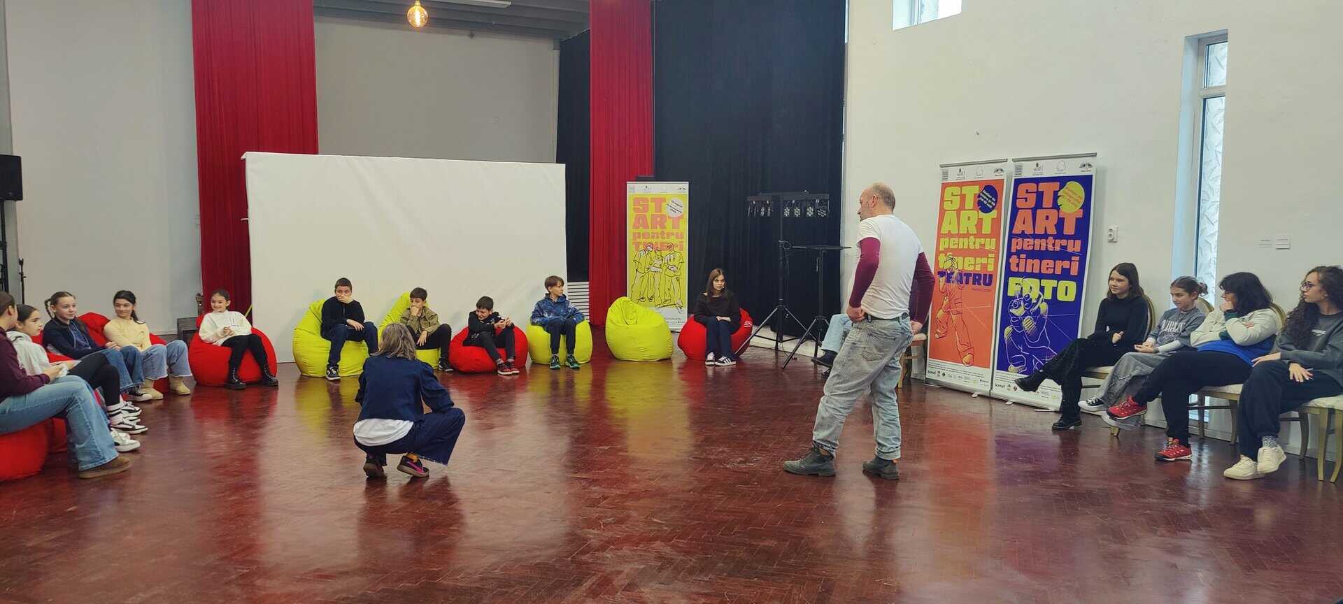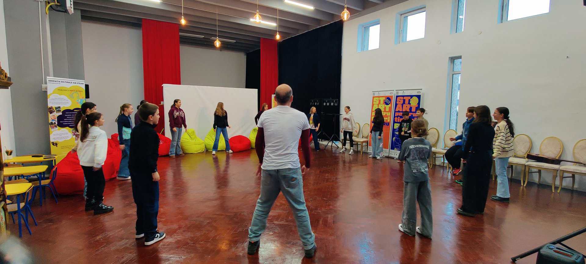 În cadrul programului START PENTRU TINERI, atelierul invitat „Comenzi” a propus o experiență intensă de lucru la granița dintre teatru, corp și mișcare: un laborator în care adolescenții au explorat reacția, ritmul, atenția și prezența scenică prin exerciții practice, dinamice, centrate pe coordonare și lucru de grup.